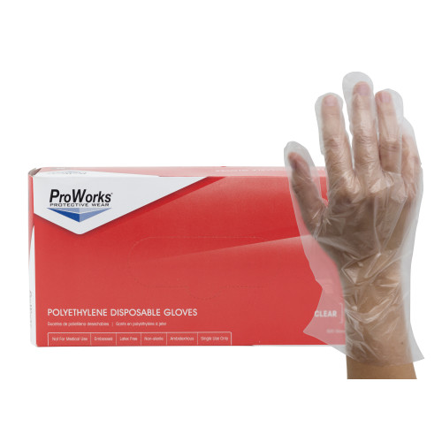 ProWorks® Disposable Polyethylene Gloves, Powder Free, Clear, Large, 500/bx, 20 bxs/cs