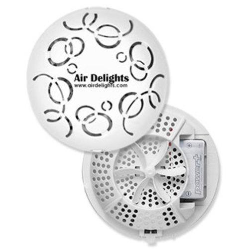 The Easy Fresh fragranced cover is composed of a unique material containing 2-3 times more fragrance than gels or metered aerosols. The motor-driven fan moves fragrance further than a typical passive system, thus freshening larger areas. The smart system behind the Easy Fresh releases approximately the same amount of air freshener daily over 30 days by turning the fan sparingly in week 1, and gradually turning it more frequently until week 4 when the fan runs constantly. The smart dispenser comes with a light that alerts you to change your cover after 30 days, and begins counting down another 30 days once you change the cover!