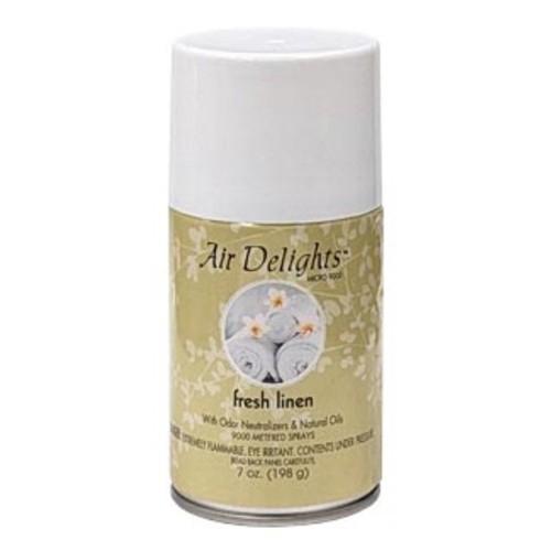 The Air Delights® Microburst 9000 Air Freshener Refill delivers enduring, professional-grade odor control and a clean, inviting atmosphere for commercial and high-traffic spaces. Designed to work with the Microburst 9000 automatic dispenser, this metered aerosol refill provides up to 9,000 finely-sprayed bursts of classic fresh linen fragrance — a crisp, clean scent with powder and musk tones that evoke freshly laundered fabrics and airy comfort. With powerful odor neutralizers that help eliminate unwanted smells in areas up to 800 sq ft and a long-lasting formula that can last up to 180 days, it’s an excellent choice for restrooms, offices, lobbies, and common areas seeking reliable, long-term freshness without the overpowering intensity of traditional sprays.