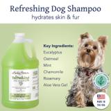 Bobbi Panter® Refreshing Dog Shampoo is infused with naturally derived ingredients, including eucalyptus oil and chamomile. This hydrating, pH-balanced formula soothes skin, reduces itching, and minimizes dander. Its eucalyptus mint scent leaves your pet feeling vibrant and energetic. Salt-free, paraben-free, and trusted by professional groomers, this concentrated shampoo is economical and proudly made in the USA.