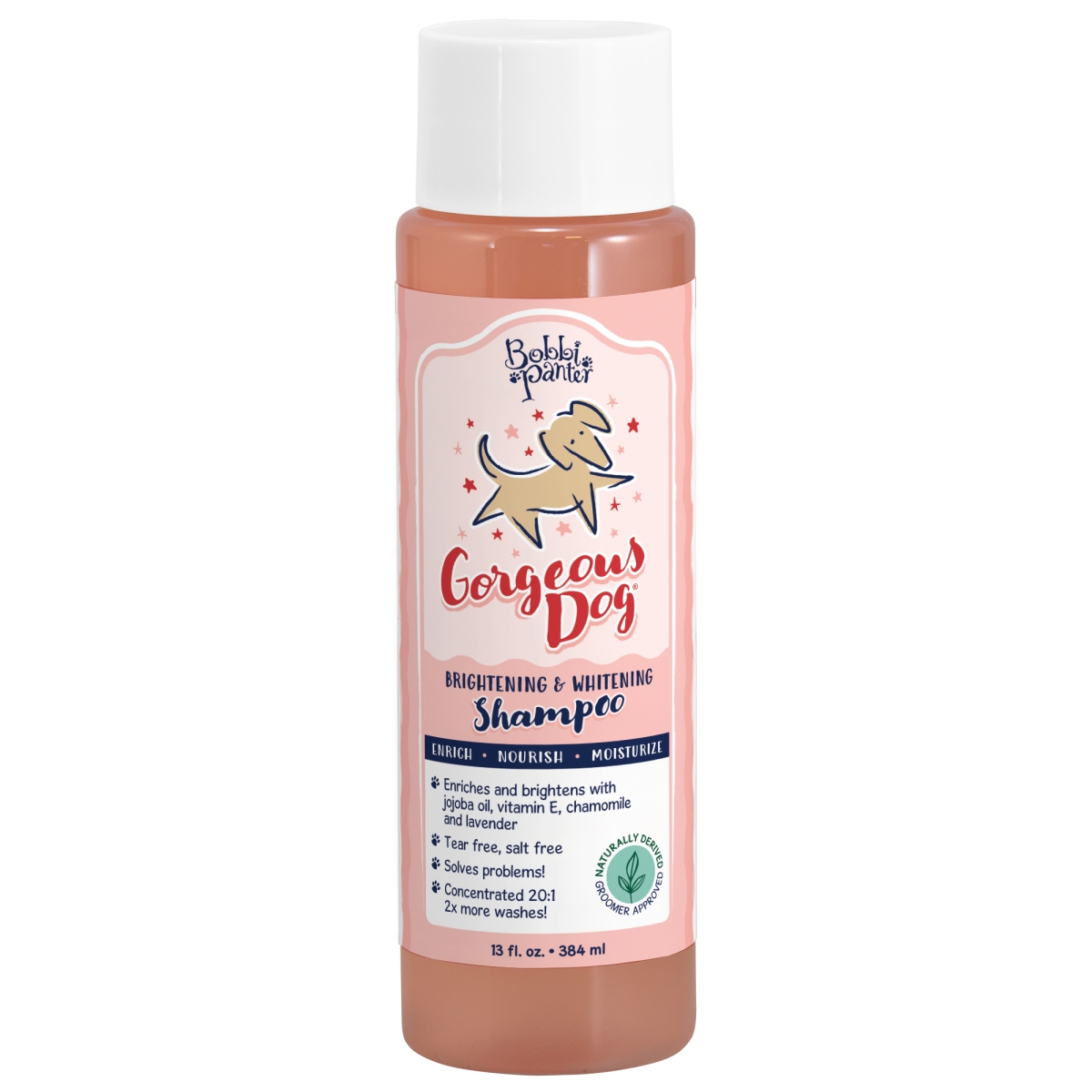 Gorgeous Dog Brightening & Whitening Shampoo uses jojoba oil, rosemary, and chamomile to brighten fur and soothe skin. Its peach-scented formula is gentle, salt, tear, and paraben-free and won’t affect flea and tick treatments. Perfect for groomers, this concentrate offers exceptional value and quality.