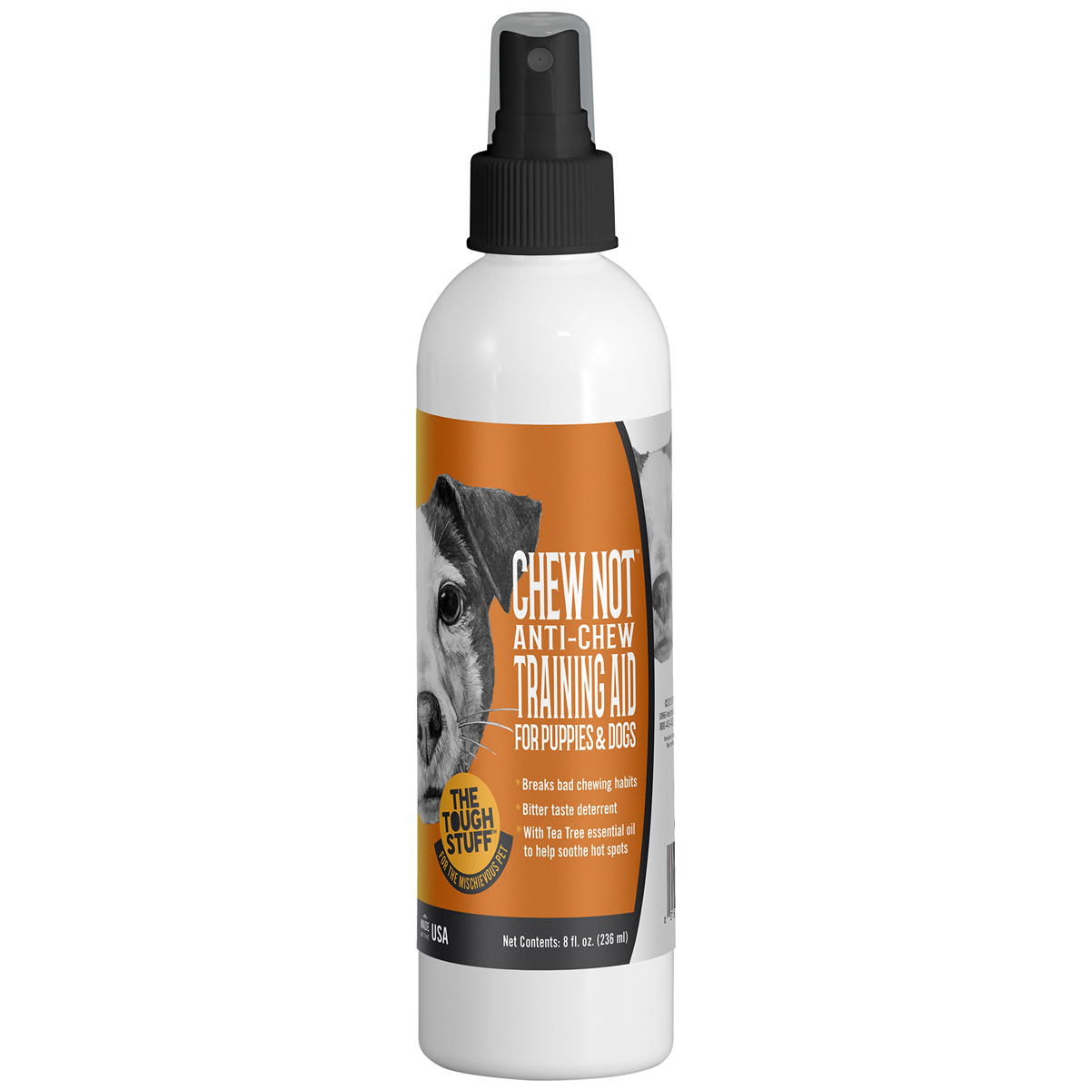 The Tough Stuff® Chew Not® Anti-Chew Training Aid contains a patented bitter taste deterrent to help discourage pets from chewing, biting and gnawing hair. Contains Tea Tree oil to soothe hot spots. Other applications include fabrics, furniture and electrical cords.