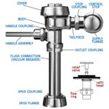 NOTE: In January 1998, the Royal diaphragm design was upgraded to a pre-assembled unit with two (2) plastic filtering rings attached to the rubber diaphragm (one on top and one on bottom). If the flushometer you are servicing has our older, segmented diaphragm with brass by-pass hole, refer to our Regal section for additional troubleshooting information.