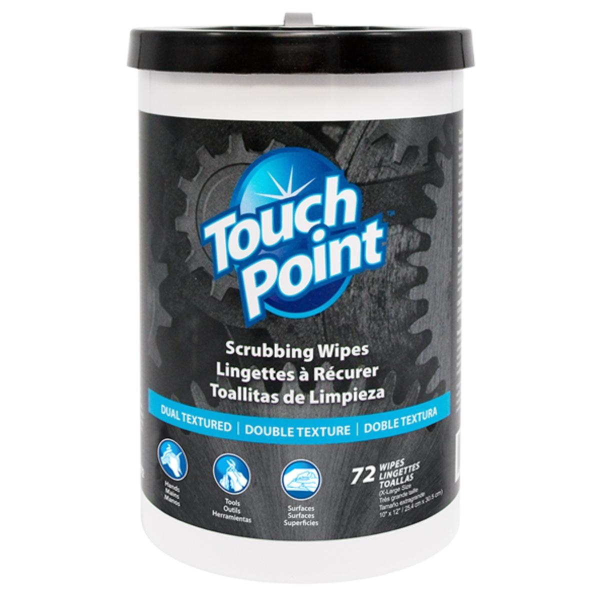 Touch Point® Scrubbing Wipes are heavy duty to handle your toughest messes quickly and easily. A dual-textured, non-scratching cloth combined with our powerful formula cuts through dirt, grease, oil, tar, paint, caulk, adhesives, and more. Use the textur