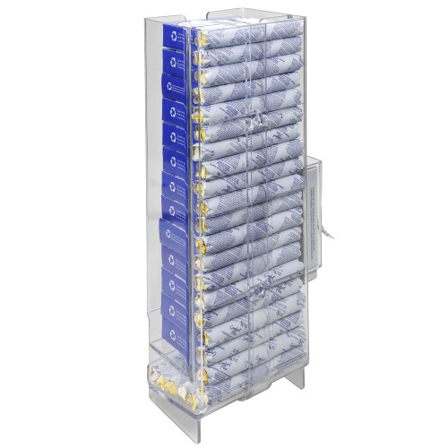 - Dispenses: (25) Vended Tampons and (12) Size #4 Box Pads (tampons and pads sold separately - not included)