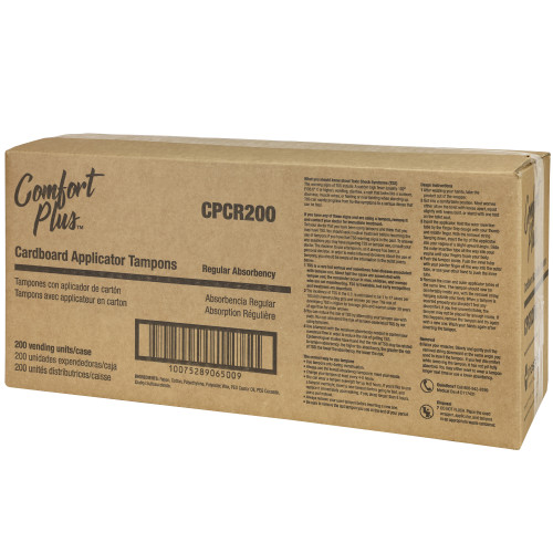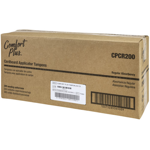 Comfort Plus® Tampons in Vending Tube, Regular Absorbency, Regular Absorbency, 200/cs