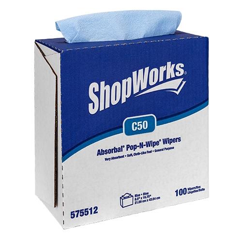 - Pop-N-Wipe® centerfeed dispenser box packaging allows for wipers to be contained and portable