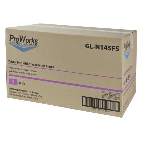 ProWorks Black Nitrile Exam Gloves, Powder-Free, 5 mil (HOS-GL-N145F). These black nitrile examination grade gloves are 5 mil, offering excellent durability and protection. They are ideal for a variety of applications including medical/exam, industrial, food processing, forensics/crime scene processing, and more. ProWorks Black Nitrile Exam Gloves provide superior puncture, tear and chemical resistance when compared to latex gloves. The textured surface provides strong grip for both wet and dry applications. They are sold by the case - packaged 100/box, 10 boxes/case, 1000 total gloves per case.